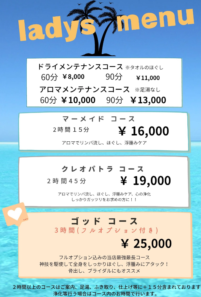 『レディース用ロングコースメニュー』